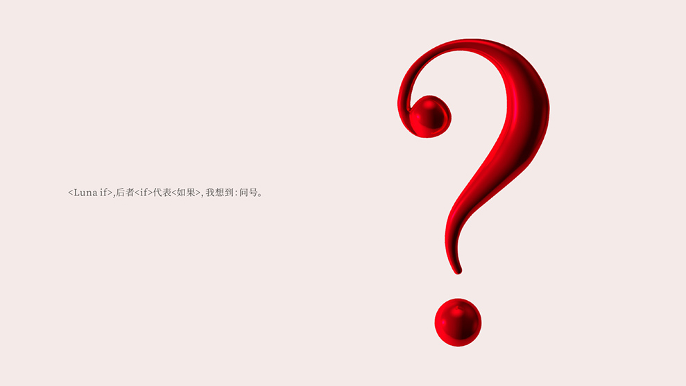 LUNA IF是什么。形成的品牌辅助元素图案。前后一问一答的形式,构成了品牌辅助图案元素,未来在物料上的应用甚广。