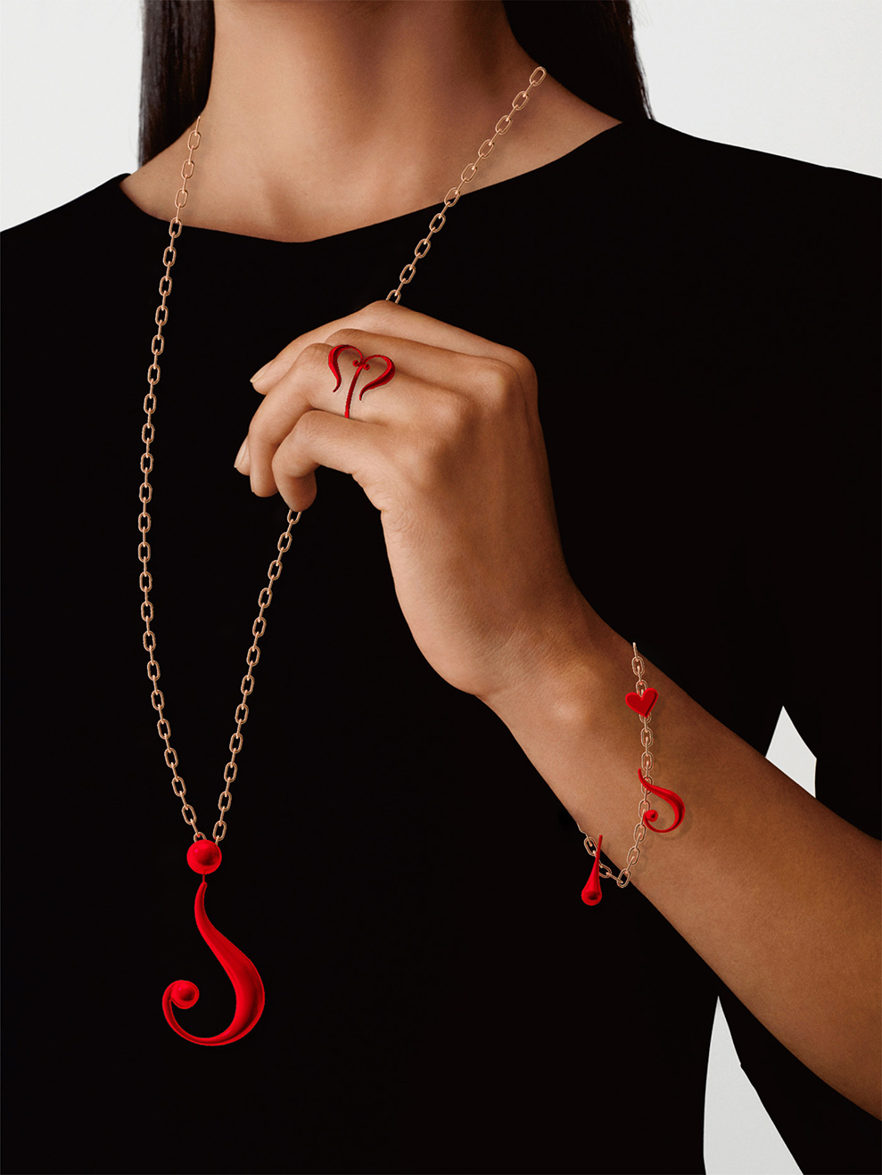 <心形>戒指、问号项链、感叹号、问号、<心形>手链的设计演绎。