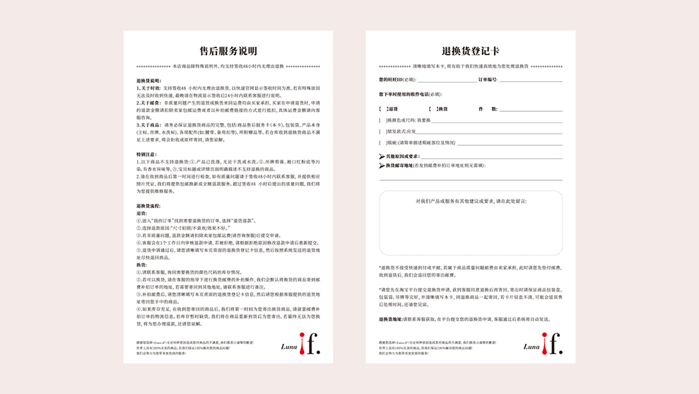 退换货登记卡(正反面)设计。