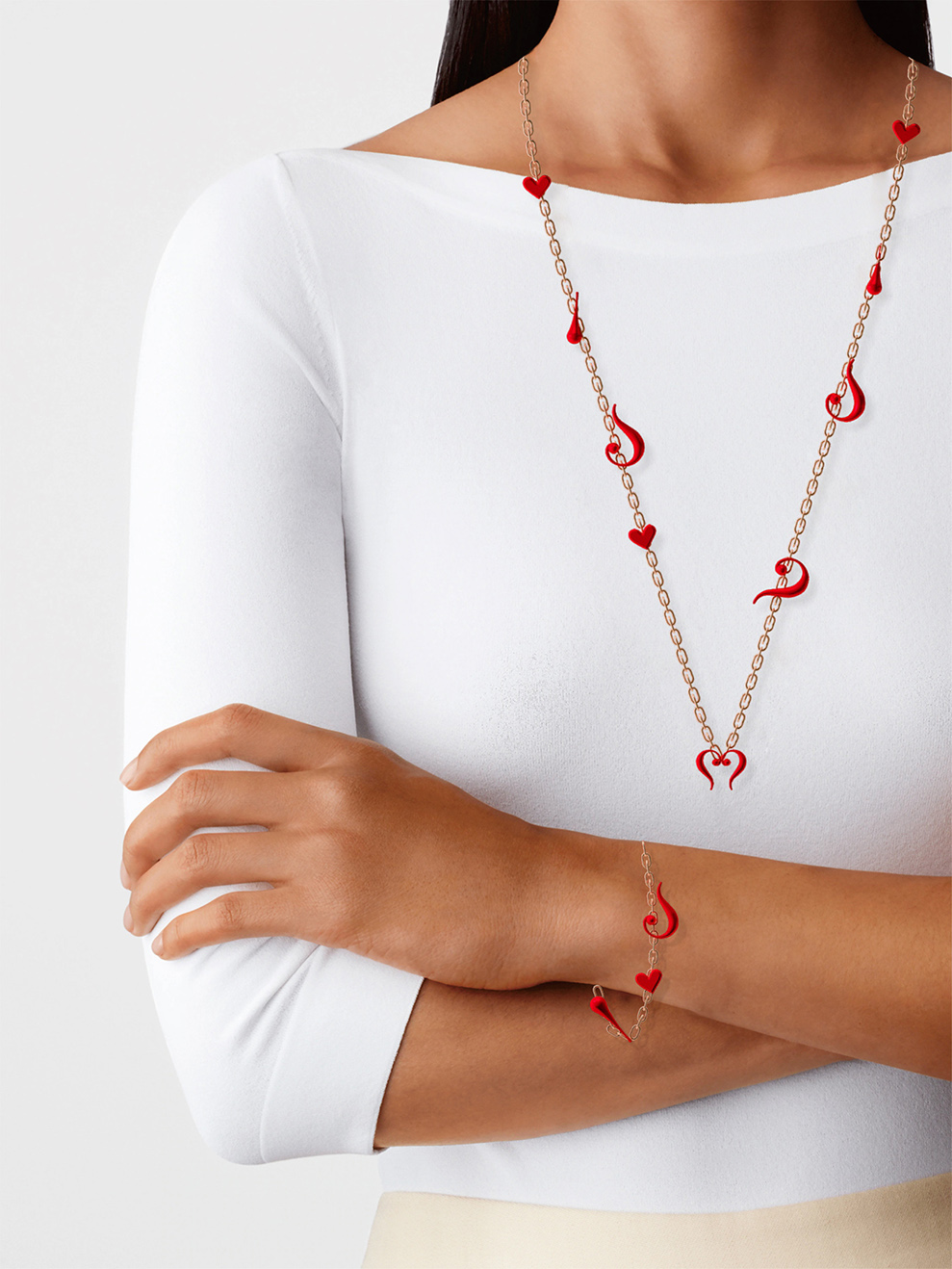 感叹号、问号、心型图案,在项链、手链上的设计。