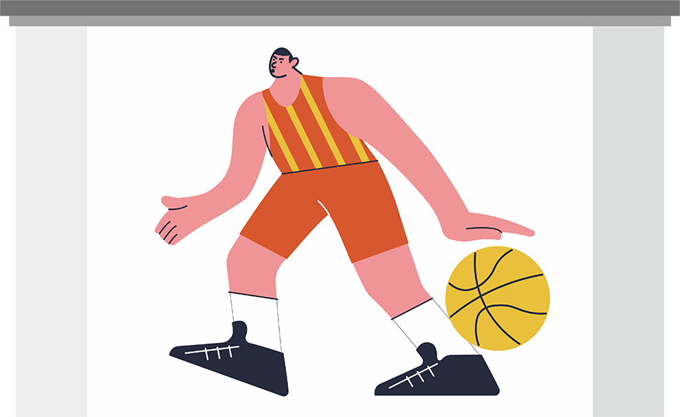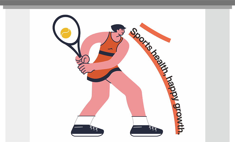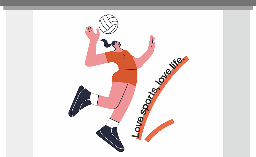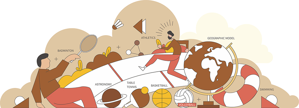 插画创作以:体育运动+乒乓球++排球+游泳+地理模型+天文学元素融入。