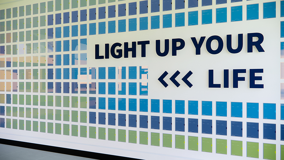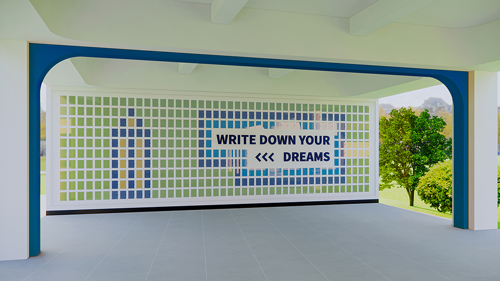 主要由透明亚克力画框为固定材料,搭配四色卡纸组合图案。四色卡纸为可更换材料,正面为心愿卡,能写下学生姓名,班级和心愿,反面为给未来的一封信,写给未来的自己,等学年结束可给回学生收藏。
