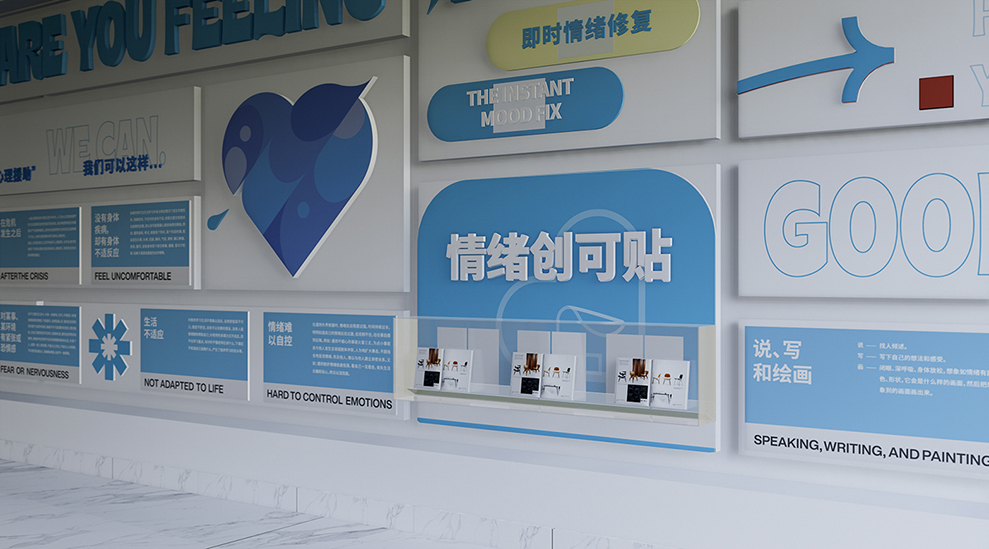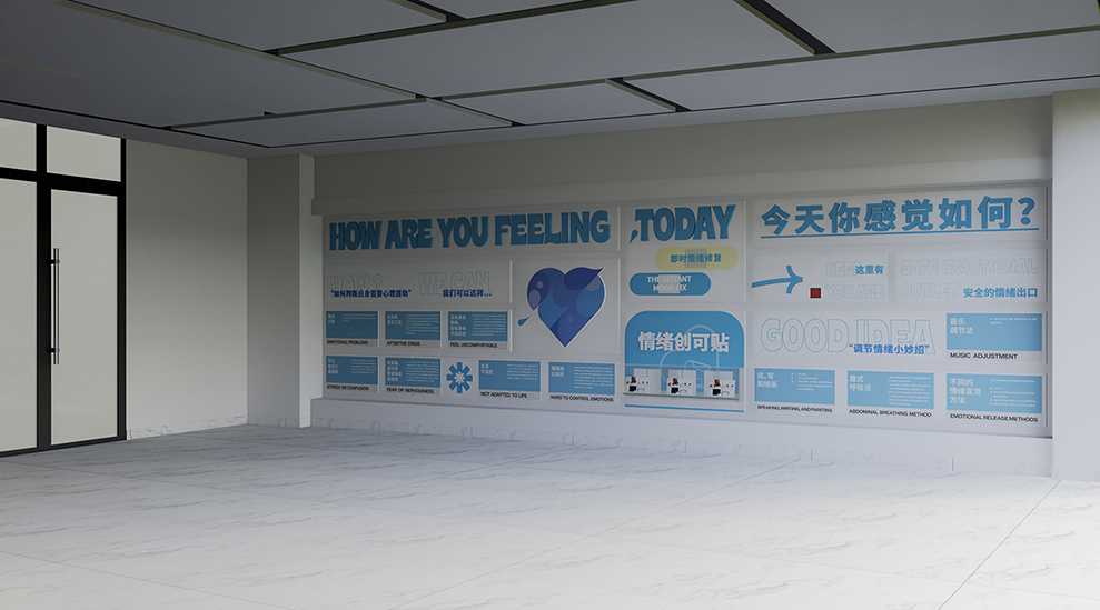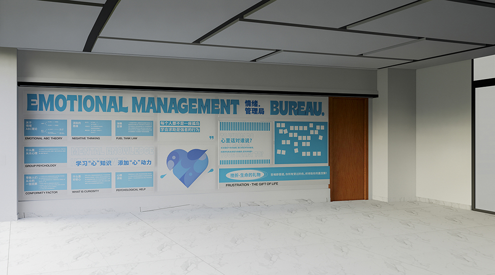 左墙:以情绪管理局为主题,左侧科普心理知识