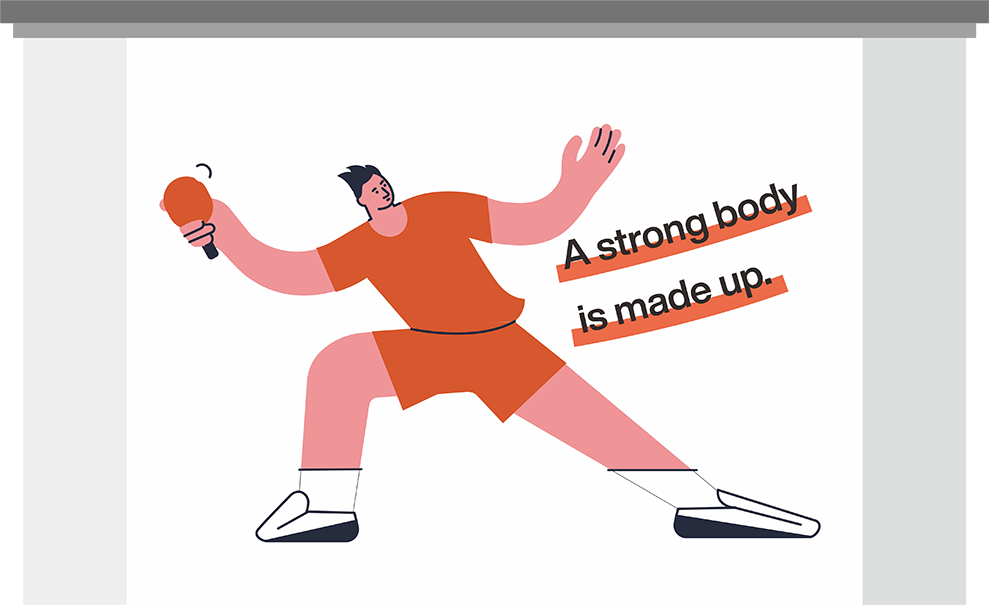 *A strong body is made up。(强壮的身体是由运动组成)。