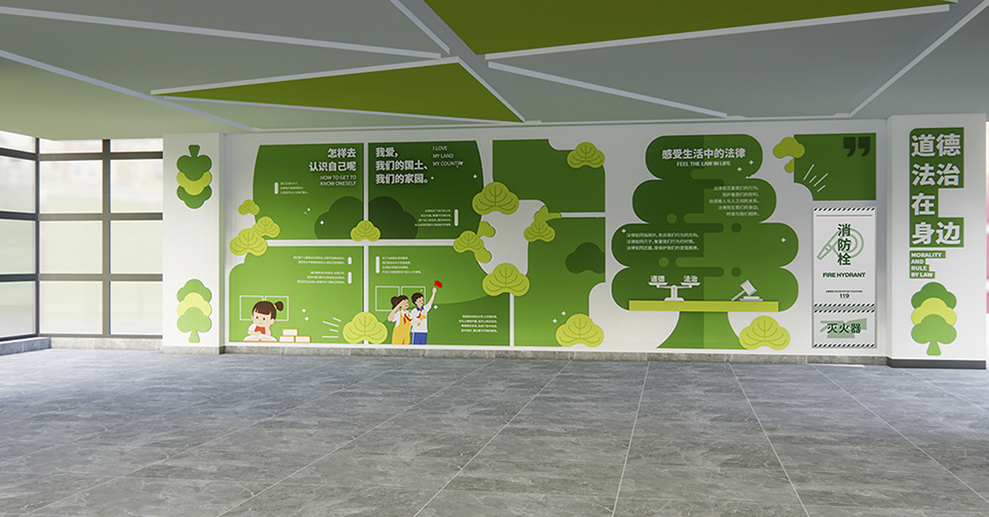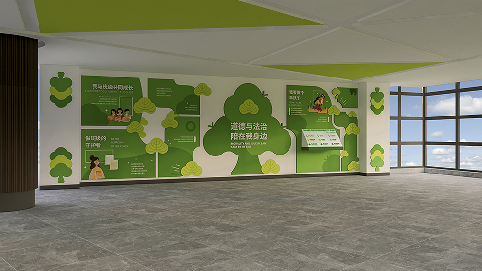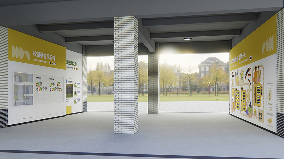 位于小学部教学楼一楼的五个架空层,分别以“五育并举”为设计主题,分别从“德、智、体、美、劳”赋予不同主题,让课室外的架空层除了有娱乐游玩功能外,还赋予空间作品展示、互动小课堂功能,让学习无处不在,让知识不再局限于课本,潜移默化,润物无声,在实践中践行“十个一”工程,深入落实五育并举,为学生全面发展赋能。
