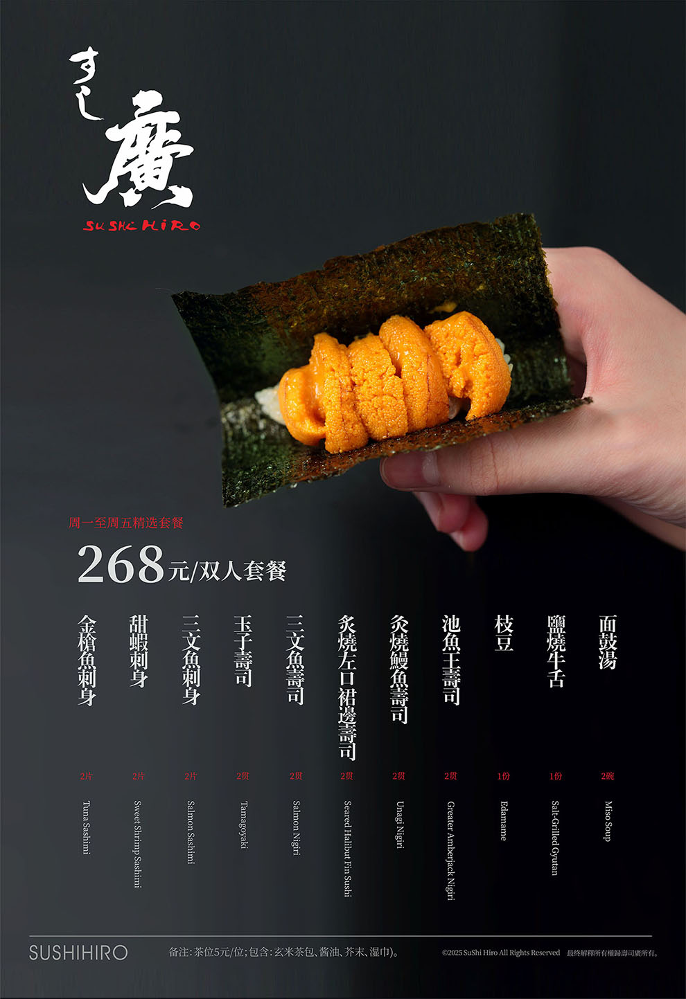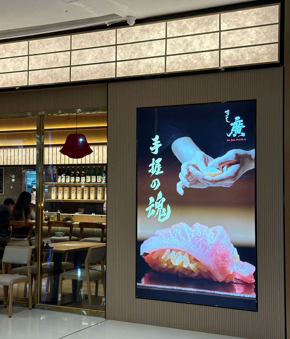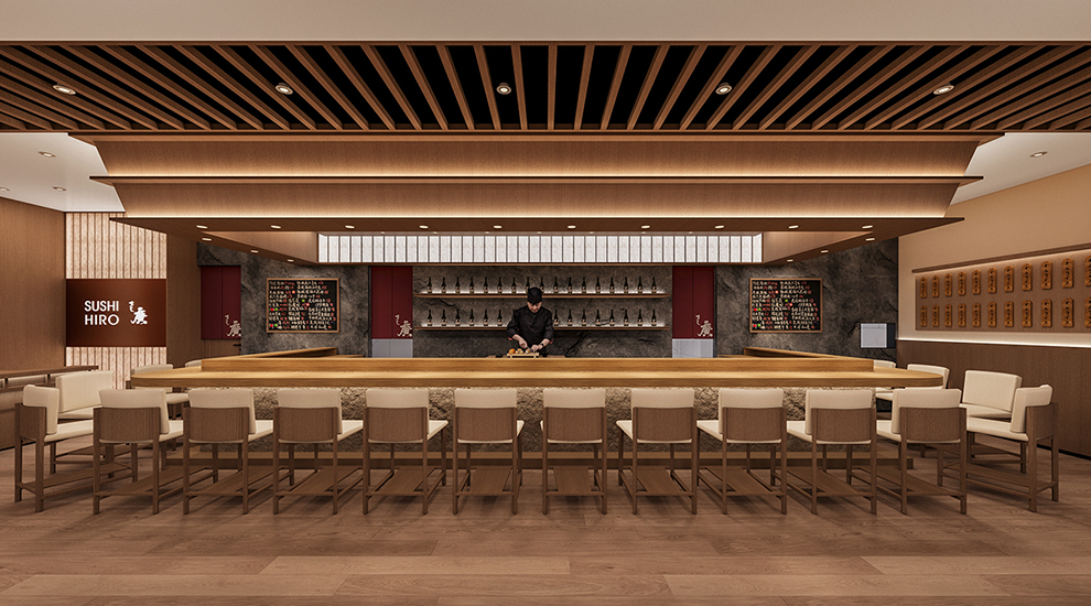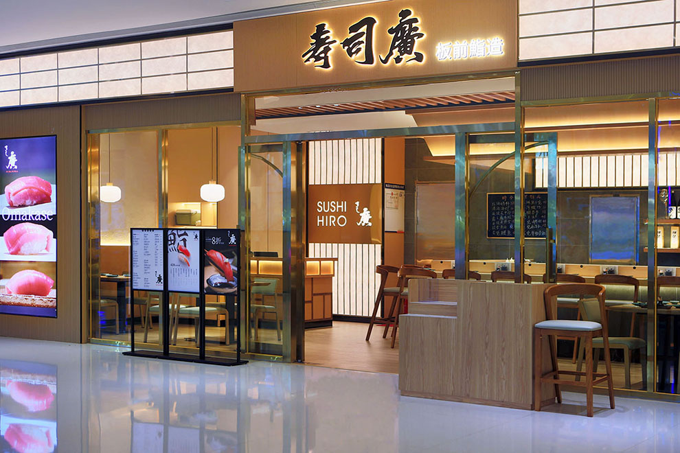 在品牌命名上,我们以寿司为餐饮品类核心,加上一个繁体的廣字,来源于创始人姓名中一个广字,即:寿司廣,亦如:寿司郎一样,命名简洁、传达高效。