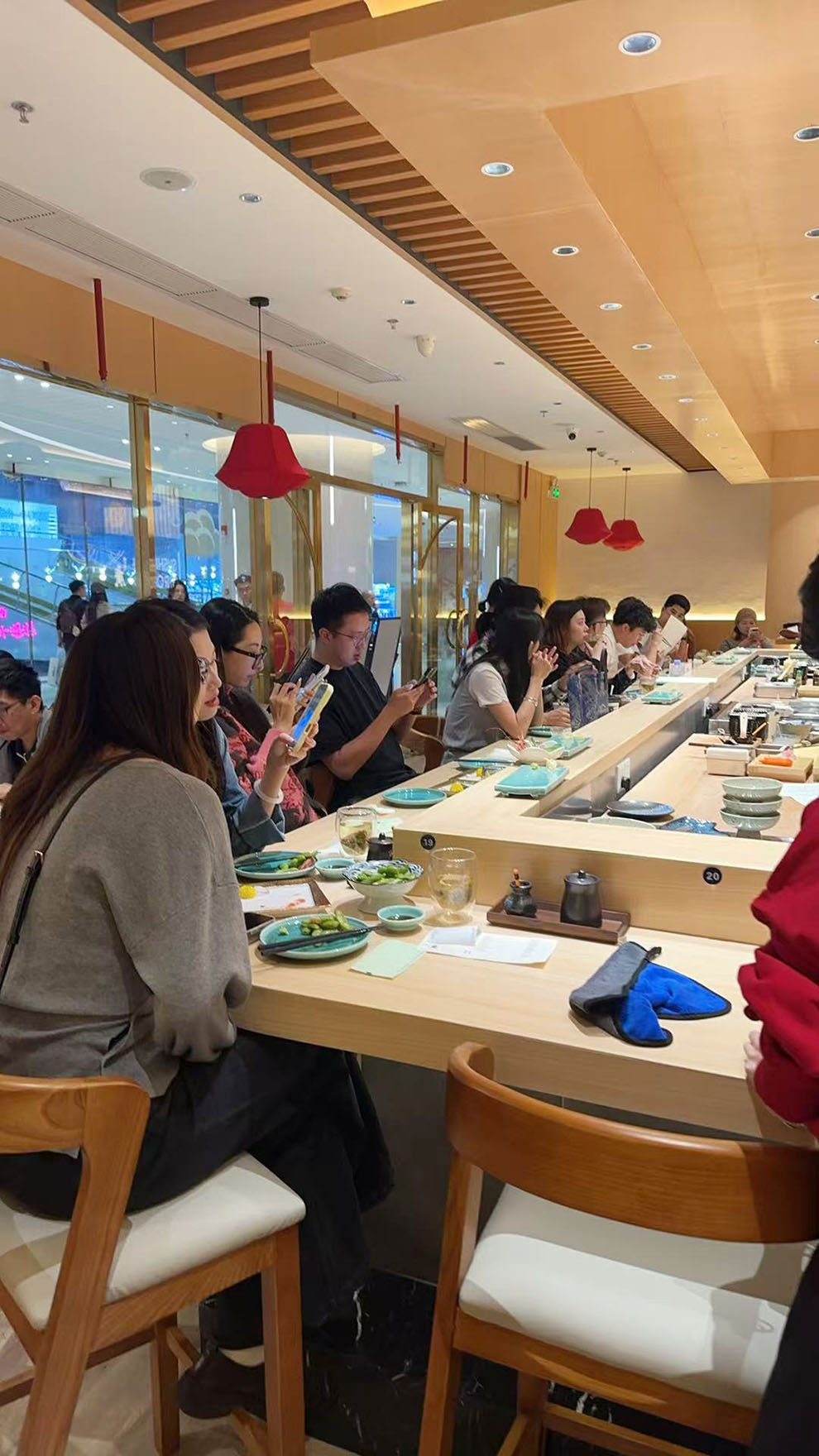 团队决定取消:回转模式,回到:板前模式。让消费者与板前师傅,能够面对面交流与体验,让消费者肉眼可见食物的新鲜与现制;也可以理解是让高高在上的Omakase走下神坛,让曾经少则人均五六百元每位,动辙人均数千的Omakase,回到人均200元-400元/位价位,回到平民阶段,能让大多数中产阶层都能消费得起,但又不至于跌落至人均七八十元的低价回转寿司中去,为了利润,牺牲品质,从而形成恶性的低价竞争。