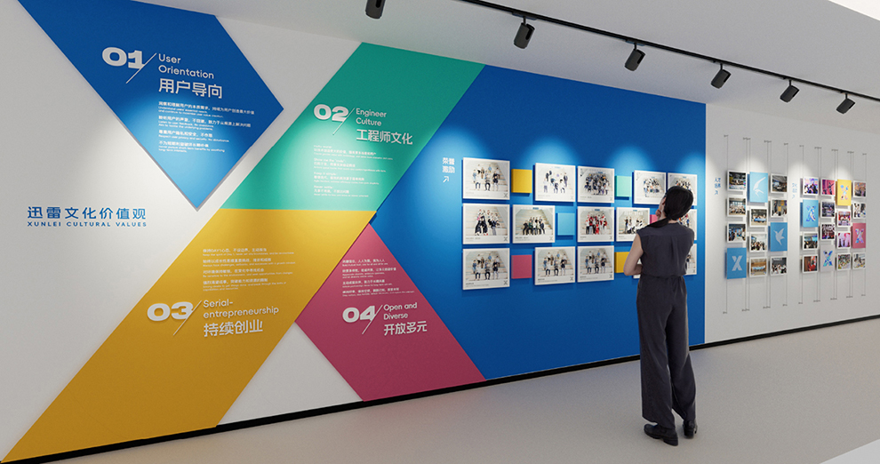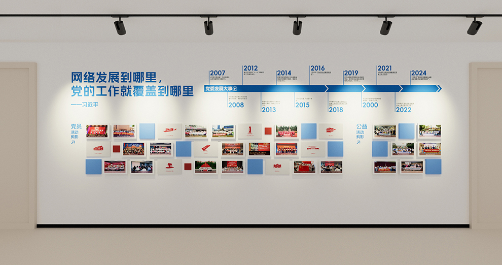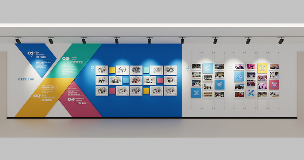 位于深圳迅雷大厦18楼(文化墙&党建墙),由客户内部自行设计,我方给予图纸深化与落地施工执行,深化设计及完工后实景如下。
