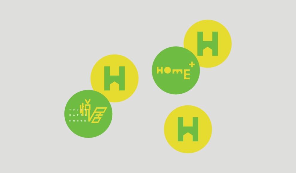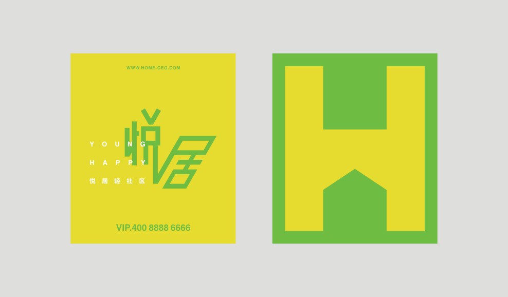 在其文字体:悦居-字体的处理上,我们故意倾斜30度,代表年轻人不墨守规的处事风格,