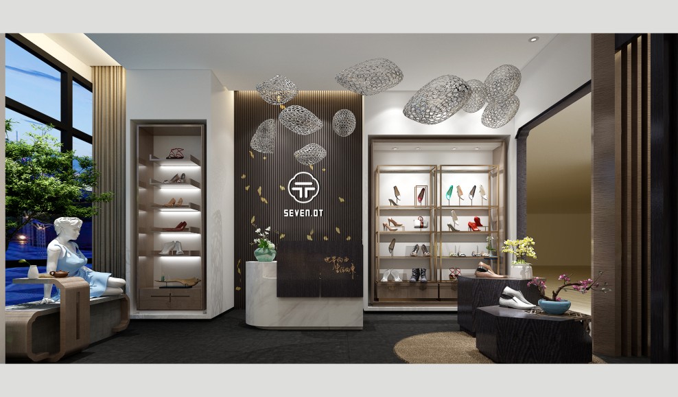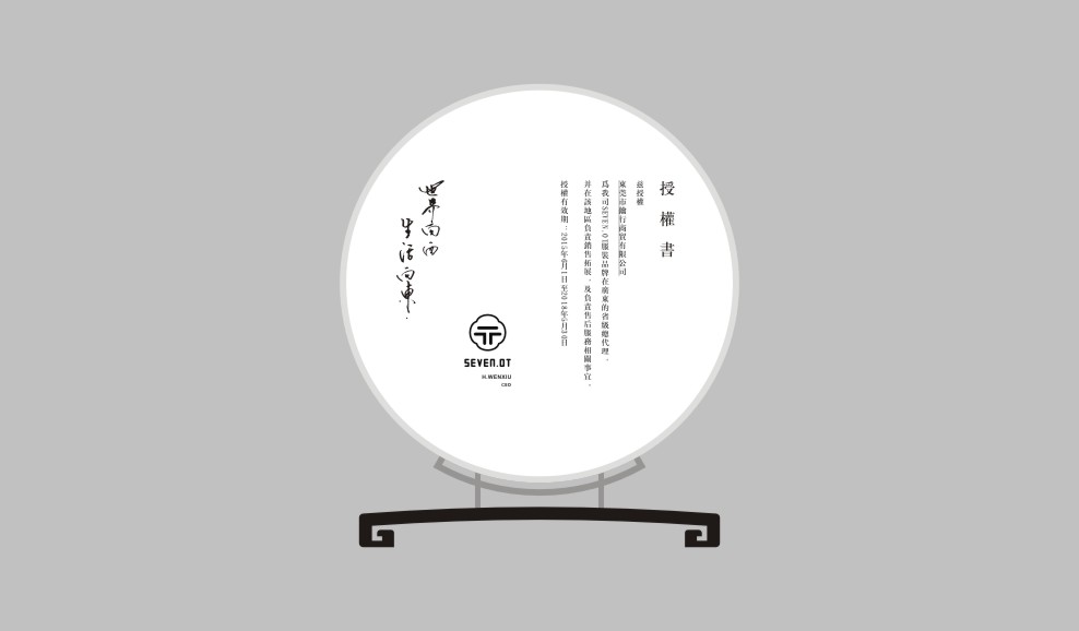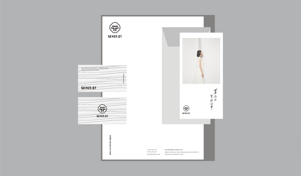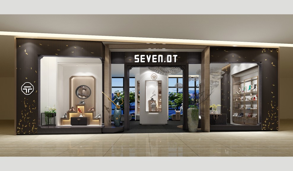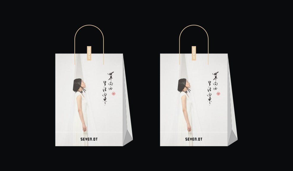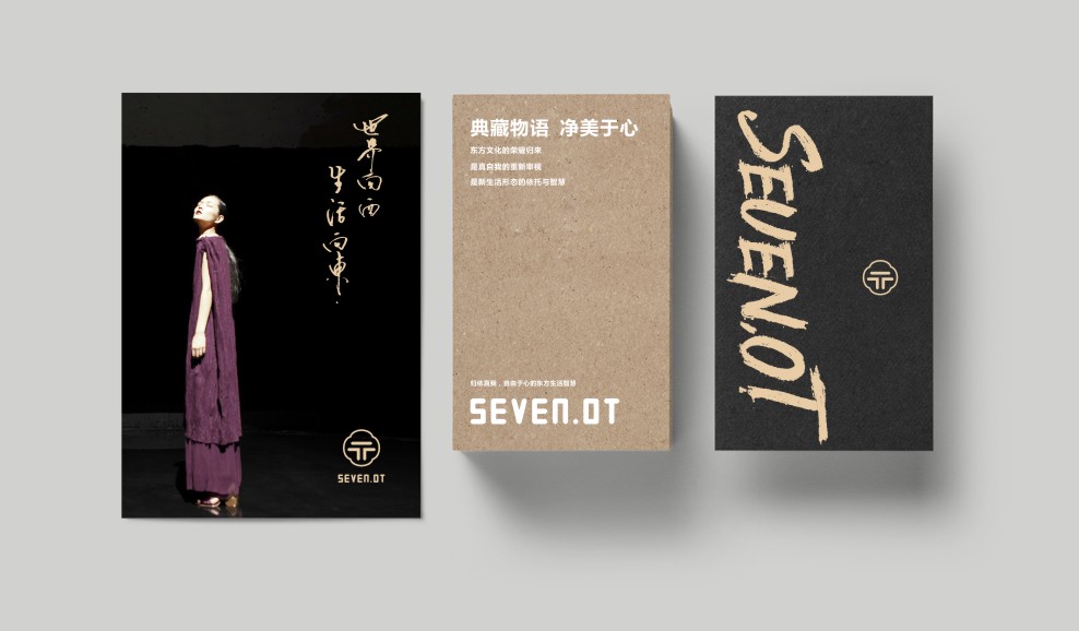 在设计之前,关于SEVEN.OT的品牌形象的思考,怎么样的品牌形象更加符合SEVEN.OT东方简尚的品牌气体,如何打造其独具一格的品牌气质是我们设计的方向。首先,关于标识图形的创作,我们以7+O+T为主体,融入东方传统建筑上梅花型符号。其次,在广告语的创作上我们邀请云韵坊.坊主(张勇先生),进行钢笔书法创作,增添品牌书香文化。然后,在西文字体的采用泼墨处理,东情西韵的表达方法。最后,关于线下陈列上,我们提出中国传统山水造型作为鞋、服饰的一些陈列建议。