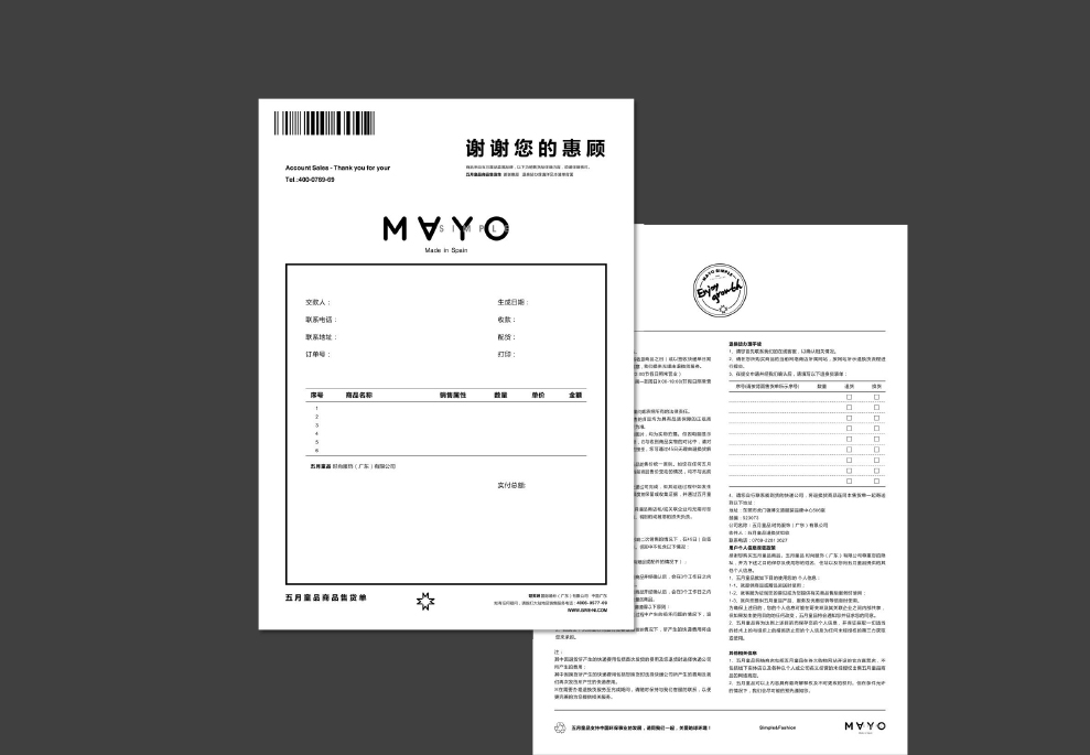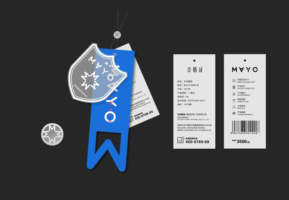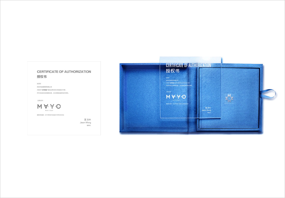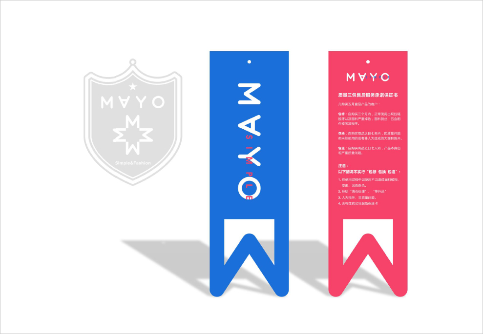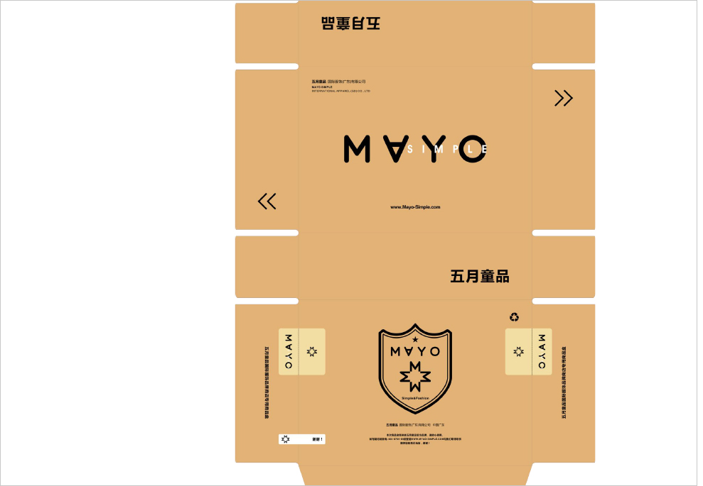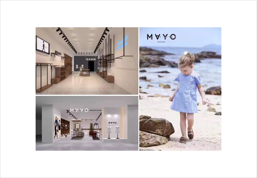 在此设计商标的设计上,我们仍以英文为创作主要方向,在设计手法上我们放大「MAYO-五月」,使之成为视觉设计的中心,在其视觉习惯上,我们特意倒置「A」,从而使这个商标与众不同起来,变得有特色起来,在其「Simple」我们将行弱化,指明其品牌的简约风格;「Be From Spain」同「Mayo」呼应,把品牌源自于西班牙这一理念,延续下去,形成品牌资产的一部份。