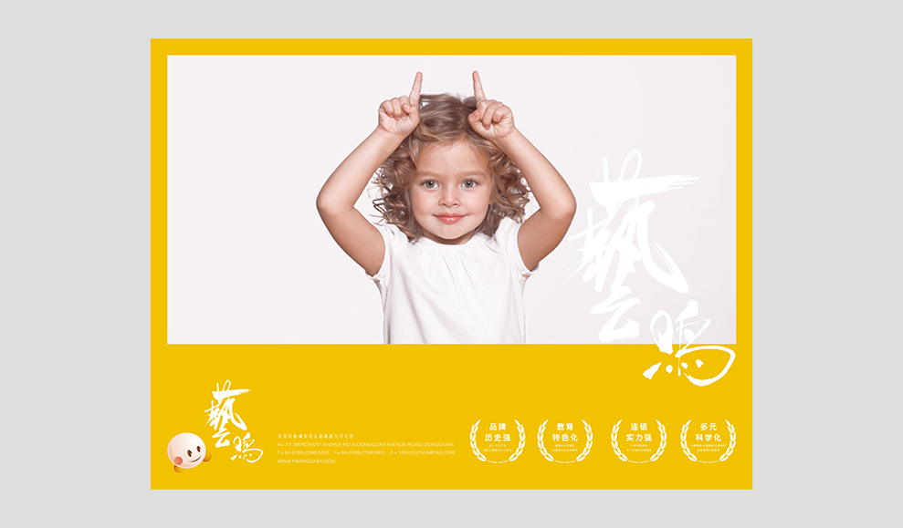 ①. 字体组合优化:在标志的优化上,我们以简化为主,因为之前的标志以“书法字+卡通+中文名称+英文名称”构成,而作为有一定历史的幼教品牌,我们只需要保留“书法字+卡通”即可,让组合不那么复杂而难于应用。