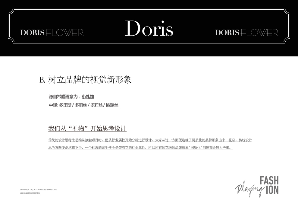 DORIS源自希腊语意为:小礼物,中译: 多里斯 / 多丽丝 / 多莉丝 / 桃瑞丝,我们从“礼物”开始思考设计。
