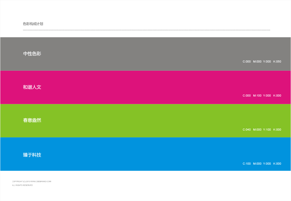 色彩构成计划:中性色彩.灰 + 和谐人文.玫 + 春意盎然.绿 + 臻于科技.蓝
