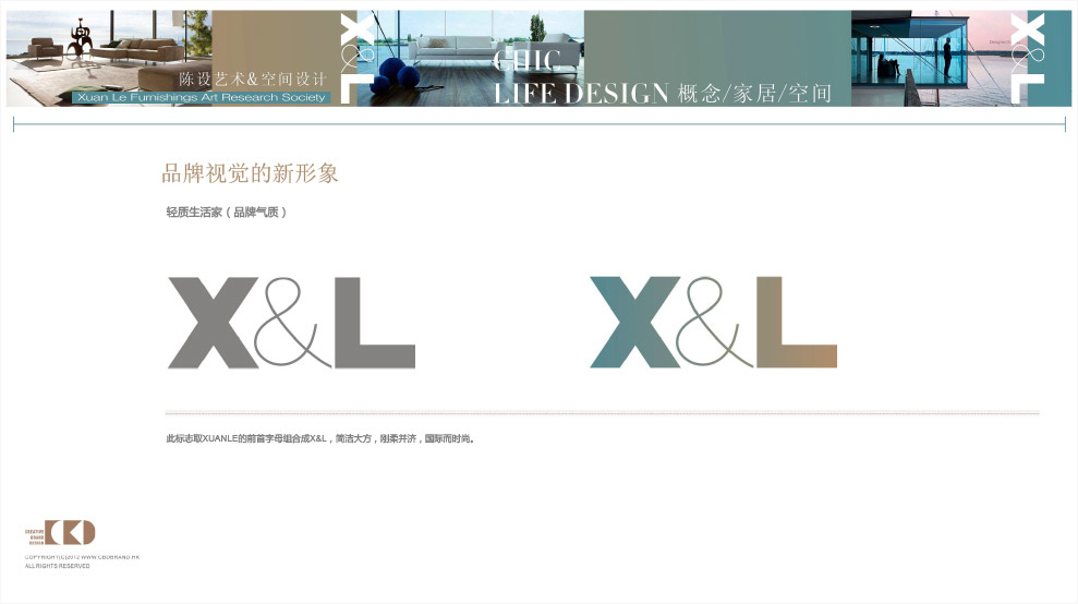 此标志取XUANLE的前首字母组合成X&L,简洁大方,刚柔并济,国际而时尚。