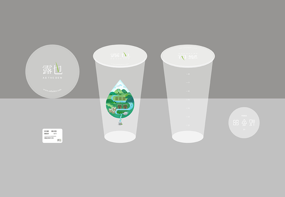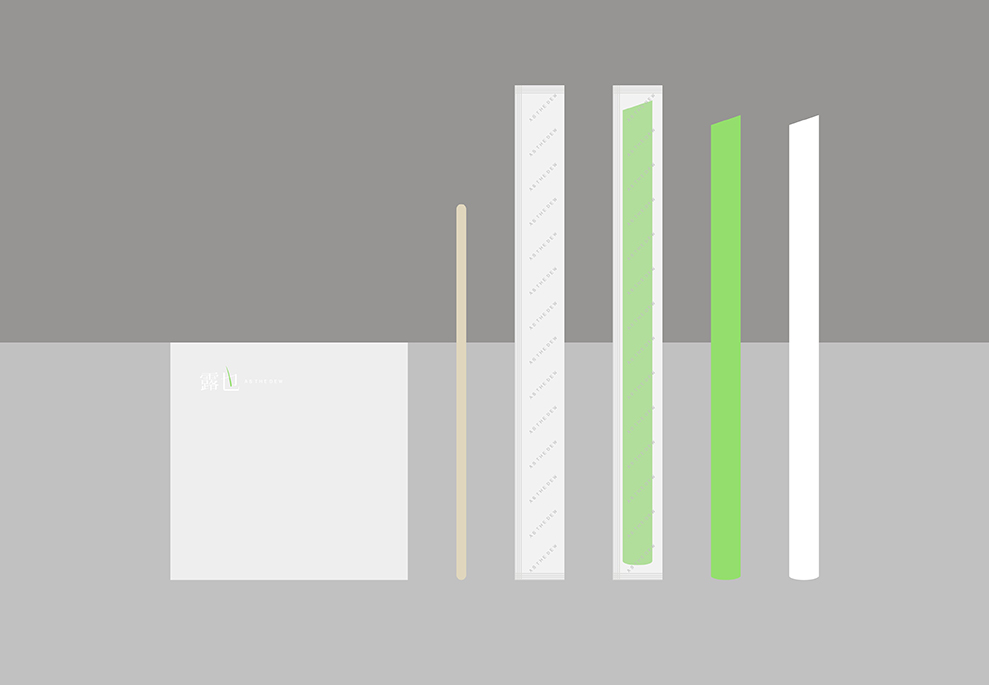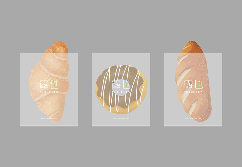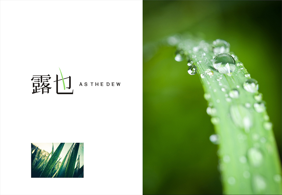 一直思考什么样的设计,更符合露也品牌形象气质。露也,露水,水滴纯净之意。在字体的设计上,很容易惯性思维,把水滴之形融入至字体中,从而造成雷同。露字结构复杂,上为雨,下为路,如果着着强调「露」的设计,就很容易把「露」分开为「雨、路」,从而使消费者错误的认识到品牌是「雨路」而不是「露也」。