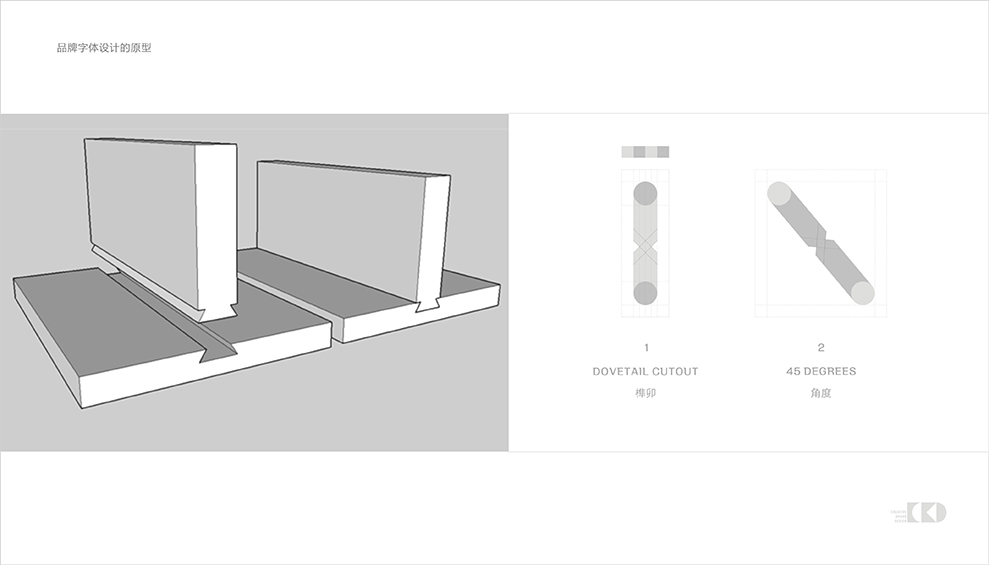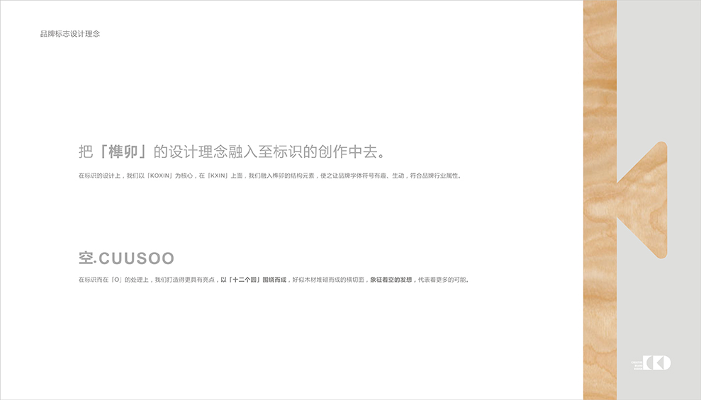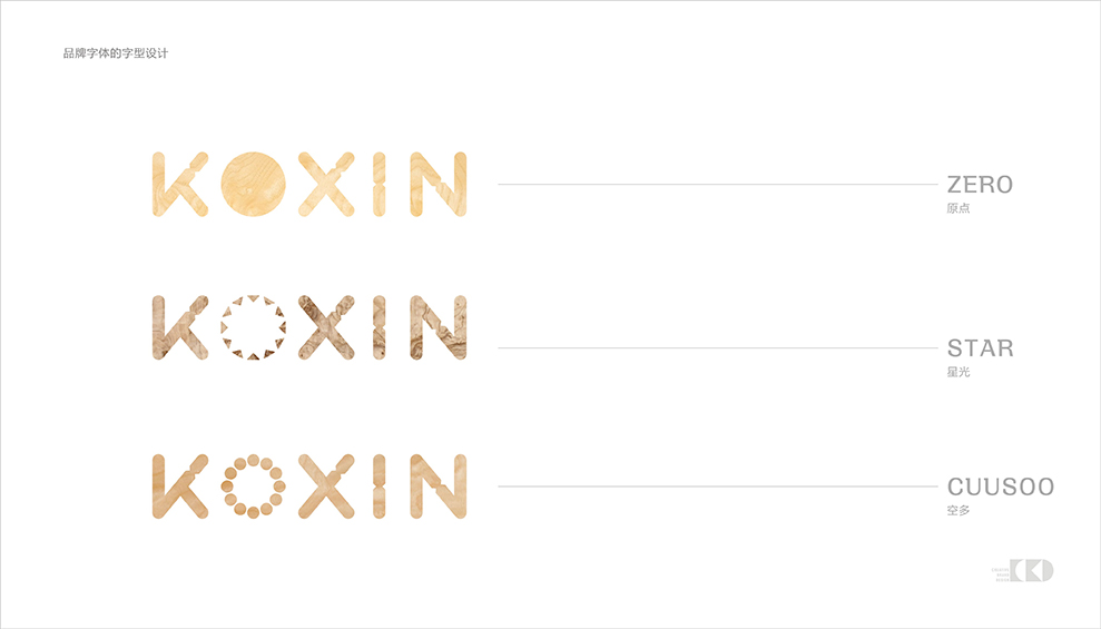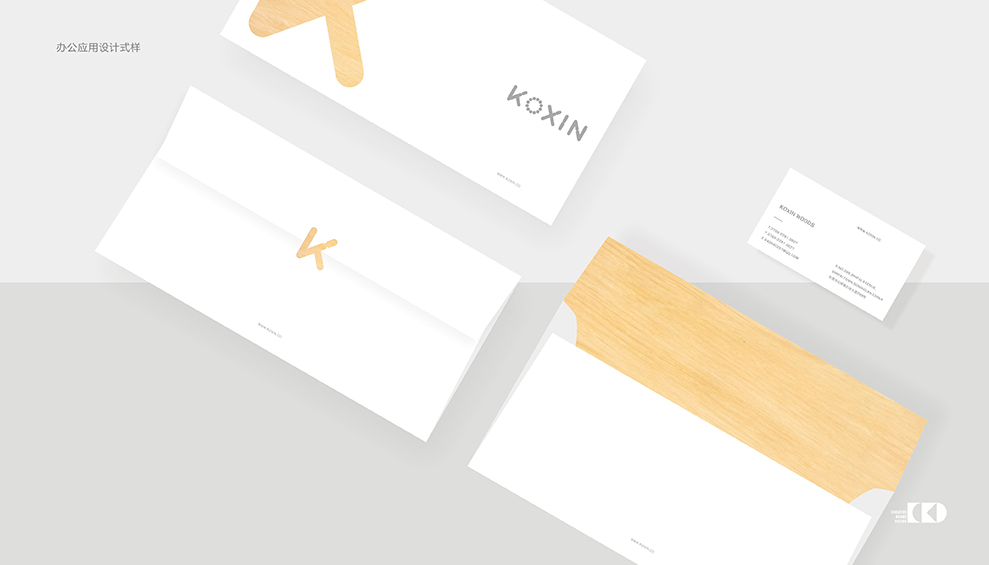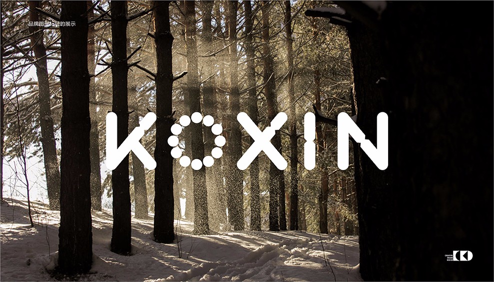在标识的设计上,我们以「KOXIN」为核心,在「KXIN」上面,我们融入榫卯的结构元素,使之让品牌字体符号有趣、生动,符合品牌行业属性。