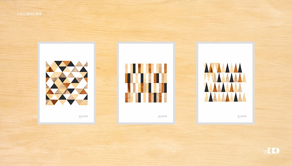 我希望我们的产品不是工业品,不是像材料样板一样,客户拿到手后丢弃在角落,有用时则翻出来,我希望用几何方式,以木皮为画的画框,能成为我们在空间上的生活装饰,亦然能够成为我们店面的装饰画。我不希望我们的产品是生硬的,应该是能与人沟通的。