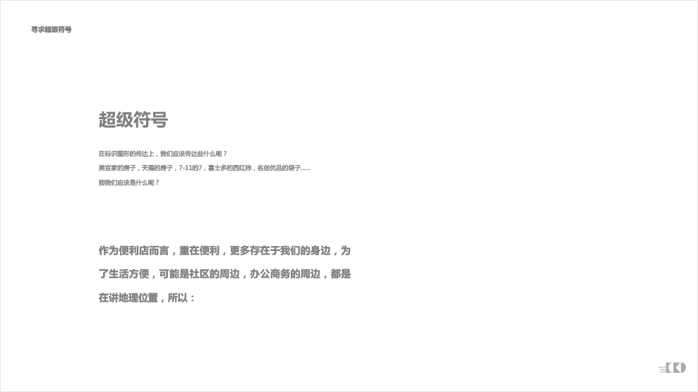 在标识图形的传达上,我们应该传达些什么呢?美宜家的房子,天福的房子,7-11的7,喜士多的西红柿,名创优品的袋子……那我们应该是什么呢?作为便利店而言,重在便利,更多存在于我们的身边,为了生活方便,可能是社区的周边,办公商务的周边,都是在讲地理位置,所以: