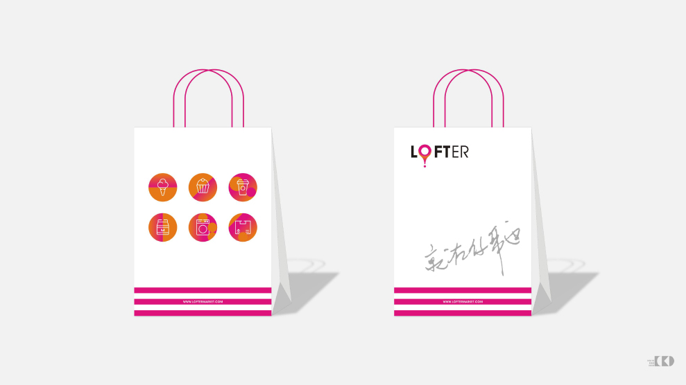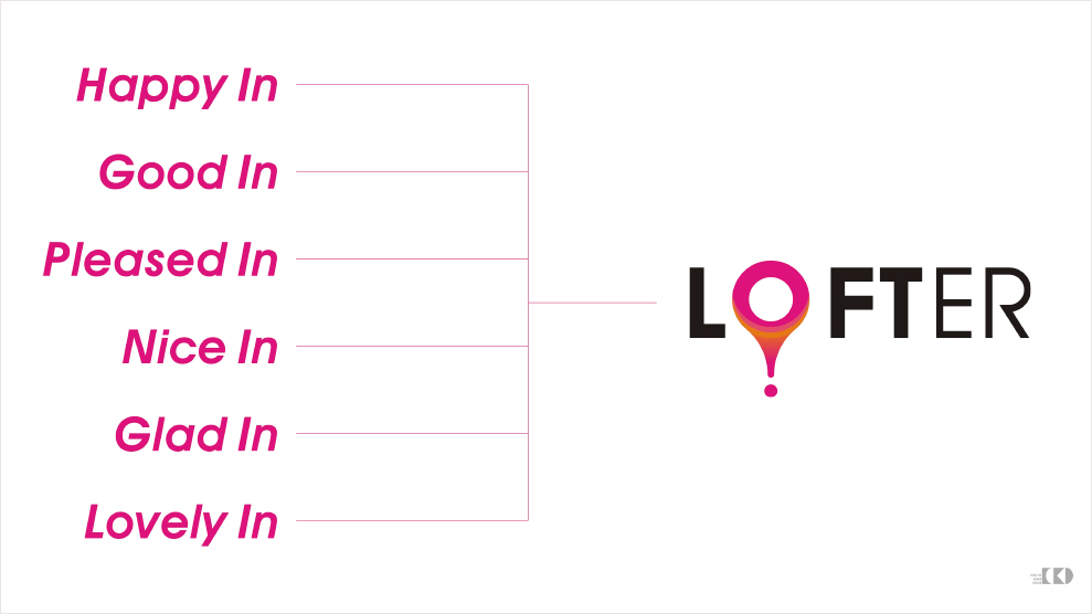 原有标识「LOFTER MARKET-乐活」,其英文部份较为冗长,「LOFTER-意为乐活」,「MARKET-喻为商店」,其作为一种功能描述性词语,我们建议取消,就「LOFTER-乐活」,更直接、简炼,更容易被记住与传播。