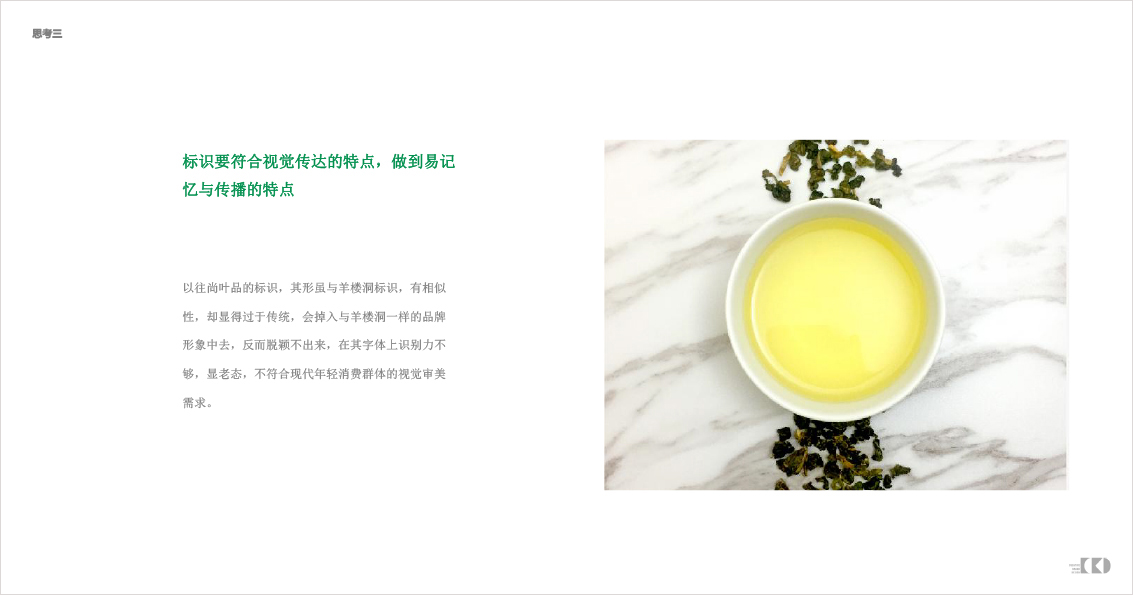 以往尚叶品的标识,其形虽与羊楼洞标识,有相似性,却显得过于传统,会掉入与羊楼洞一样的品牌形象中去,反而脱颖不出来,在其字体上识别力不够,显老态,不符合现代年轻消费群体的视觉审美需求。