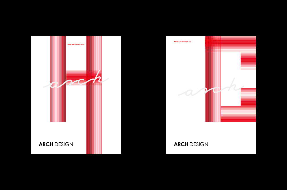 以手写体为方向来设计ARCH的英文字体,流畅欢快而一气呵成,给人传达出一种专业品牌设计师的品牌形象。
