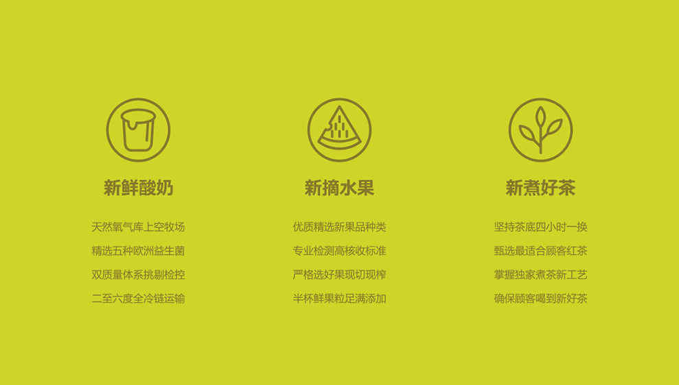 新鲜酸奶(好奶)、新摘水果(好果)、新煮好茶(好茶)