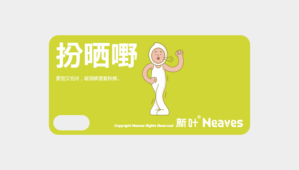 新叶君原型也是典型的“朋克养生一族”,党参枸杞、健胃消食片、眼霜也拦不住去“朋克”的心,在伪健康的假像中不健康的生活着,要说怎么收心的,当然收心是不可能的,只是更会玩了,这次玩真的,真正的健康新叶君也能hold得住,找回属于我们的年轻与活力,只有够健康,才快活。与新叶一起做一个真正健康的玩咖。玩真的,你敢吗?
