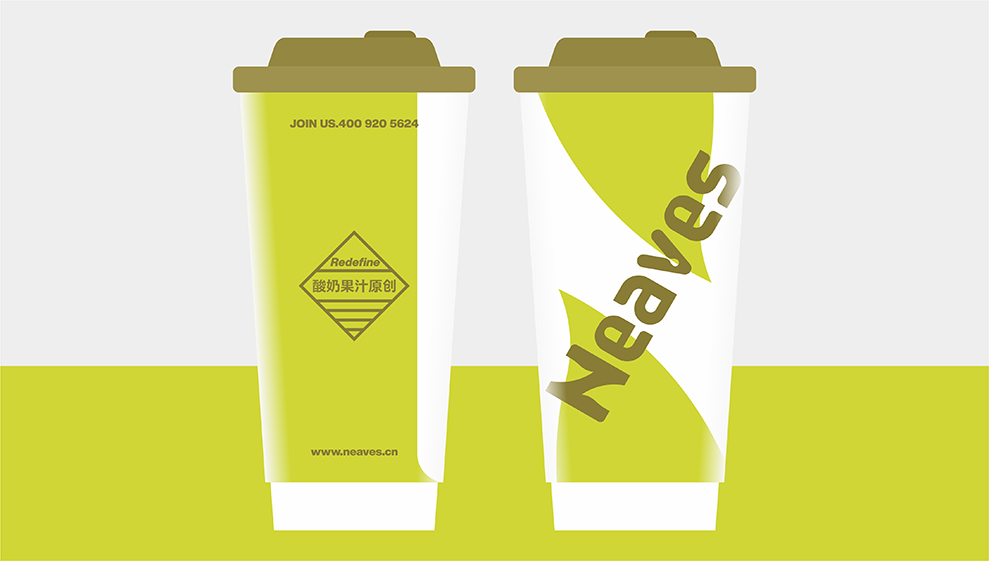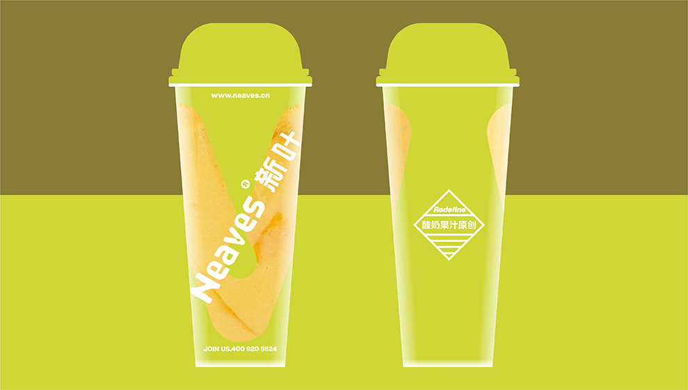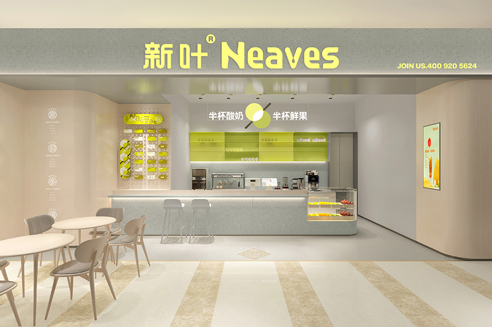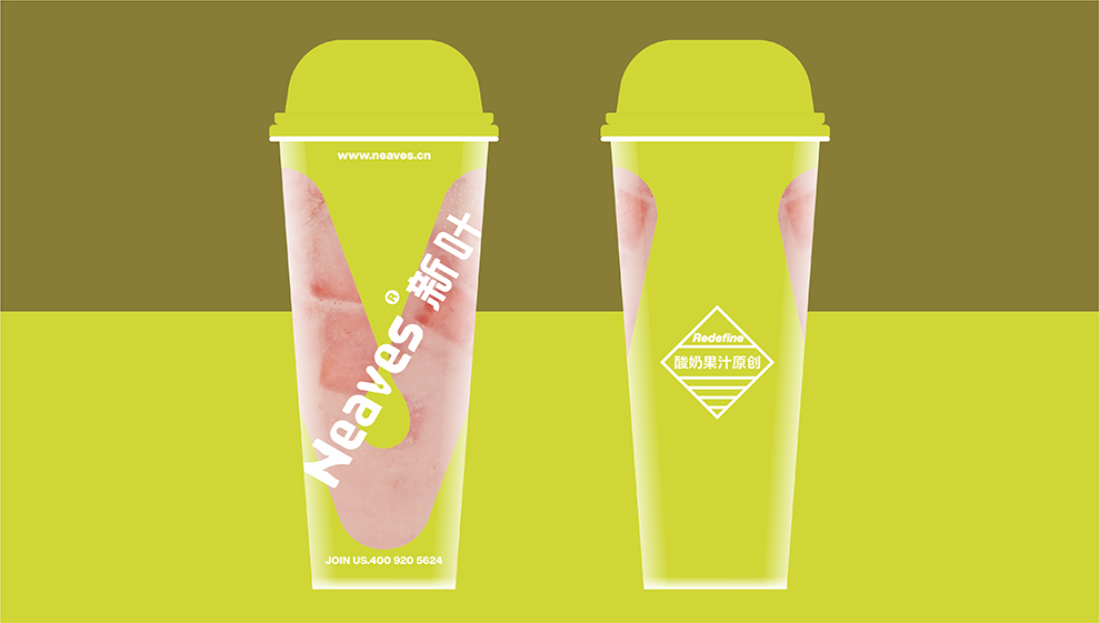 2019年的某一天,客户通过我们微信平台分享的案例,通过微信添加找到我们;他认为我们分享案例的思考和设计风格,是他感兴趣的设计机构;后通过微信的添加了解,新叶是一家深圳的茶饮连锁品牌;目前在全国有100多家门店,主打卡士酸奶果汁。