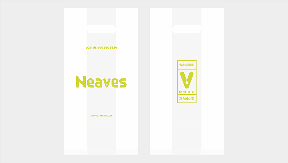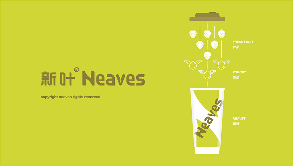 品牌英文名是一个组合性名字,由NEW(树叶)+LEAVES(树叶)=NEAVES(新叶)。