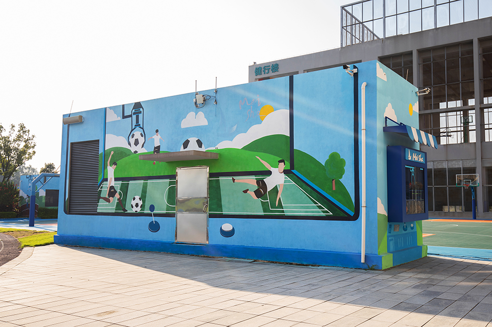 运动主题长廊是通过各种运动的场景搭建氛围感,让同学们随时随地都能进行运动的创新理念结合,主要场地以「校园操场电房、荣誉墙、游泳馆、舞蹈室和小剧场外墙」进行运动场景主体设计。让同学们享受运动的乐趣与便捷,既能「随时随地拿到运动器材」又可以「随时随地进行运动知识科普」。