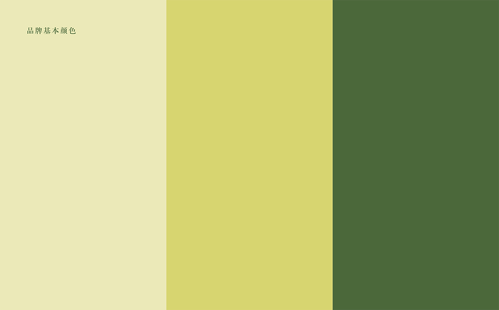 品牌基本颜色来自:马来榴莲及榴莲树的颜色,从淡黄{奶茶黄}、中黄{榴莲黄}、墨绿{马来绿}三个颜色来作为品牌主要基本色。