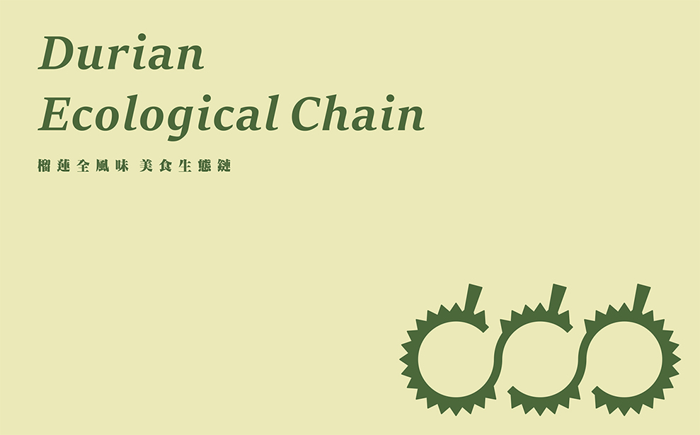 榴莲全风味-美食生态链,英文对应翻译{Durian Ecological Chain},我设计了三个榴莲互相{融合循环},表达{生态链}之意。