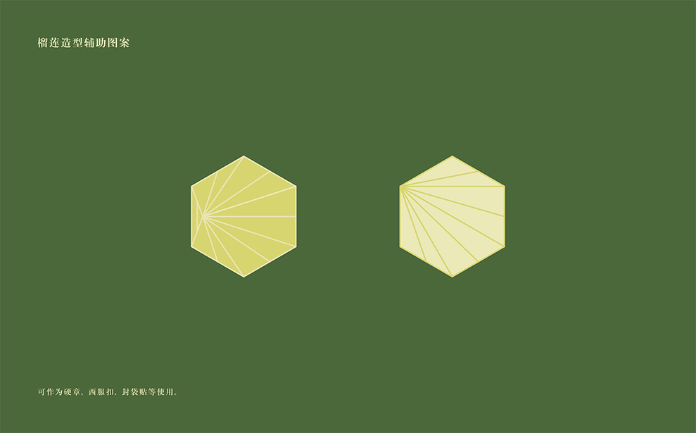 品牌标识性符号,这个来自于标识的{O-榴莲}不做为标识图形,可以单独使用,作为品牌辅助图形所使用。