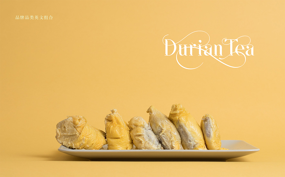 所以在整个标志的组合上就只有三种组合方式,1-全英文带{Durian Tea}对餐饮品类的补充;2-中主英辅,中文主要识别场景。3-英主中辅,双语识别场景。除此三种别的组合形式都是不正确的、不成立的。