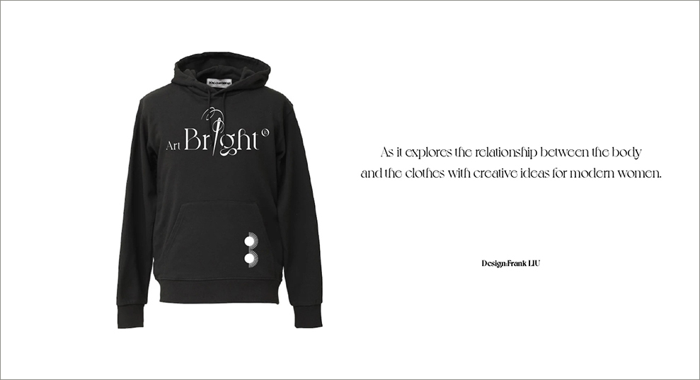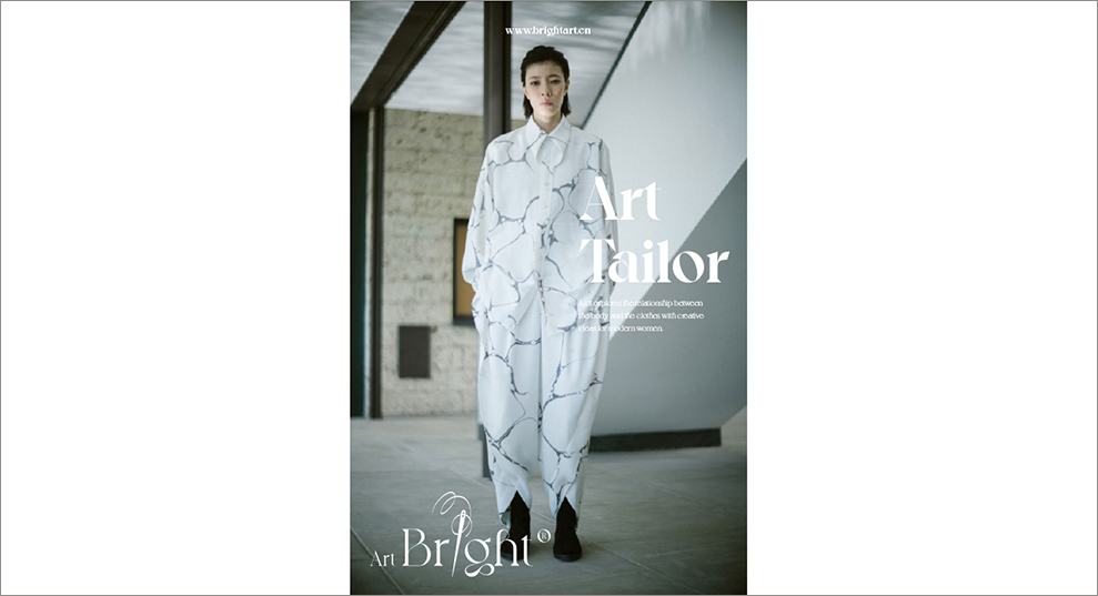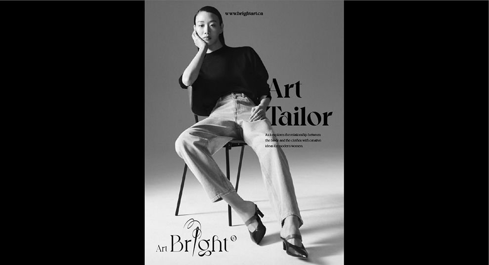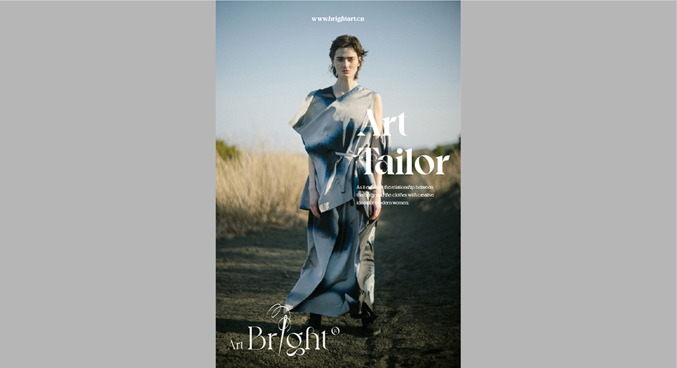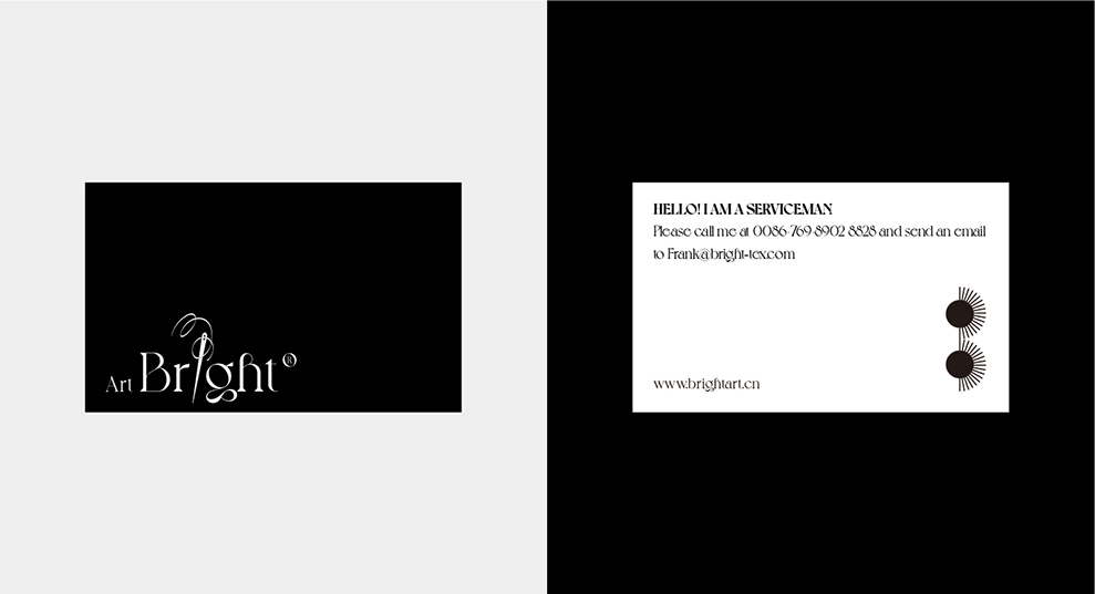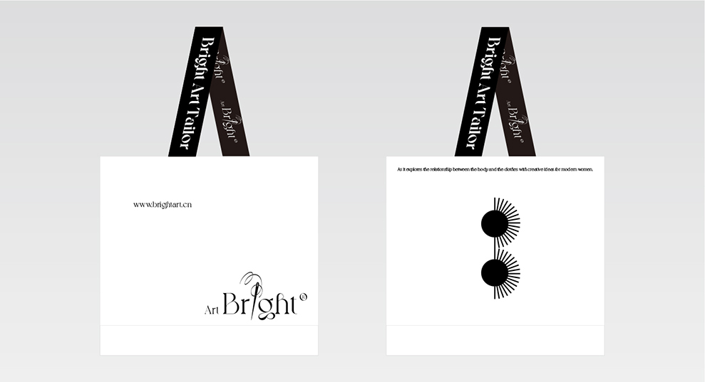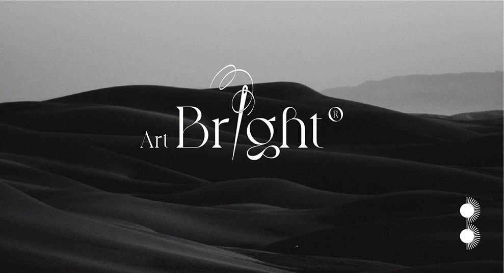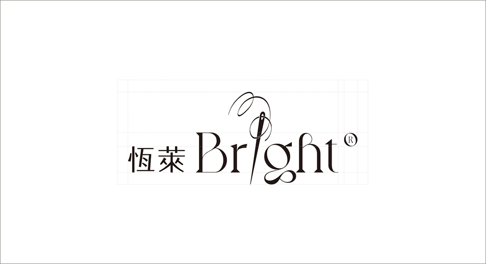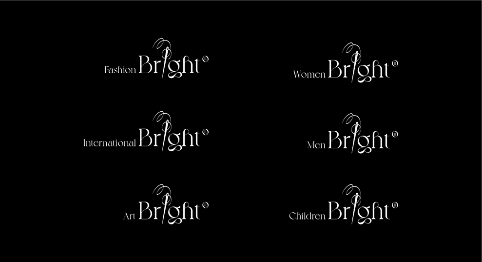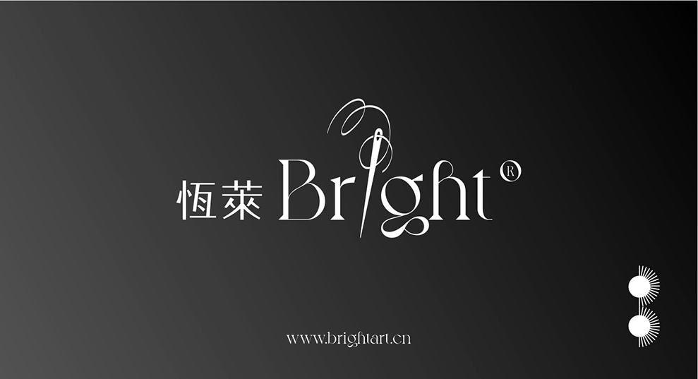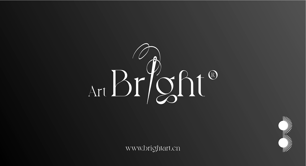 关于标志的设计我们一直在想怎么样的标志符合这样一家企业,鉴定于当今中国商标图形注册的通过率比较低,且人为评审,相似与否之间没有准备的一个度。我们还是以文字标作为主要核心识别;我们以公司英文「Bright」为基础,选用了一个英文衬线体加以改造,我们把「i」,以服饰制衣行业里不可或缺的元素「针」为代表,融入至字母中,「i」形成一个「穿针引线」的状态,表达出品牌的行业属性,前面有缀字英文「Art」为装饰,后有「R」代表商标注册状态。在左下角有一个放射状类似「B」的图形,它是品牌辅助图形使用,不是作为标志图形使用。
