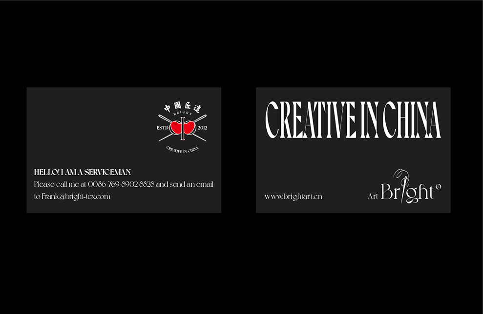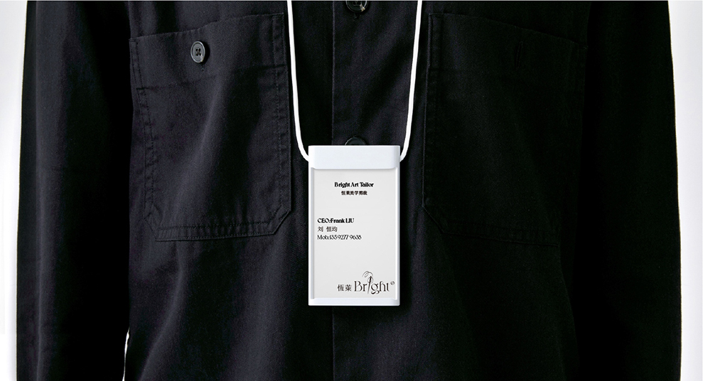 与之对应的英文命名为:「Bright Art Tailor」,Bright-指客户的品牌名,Art-指艺术,Tailor-指裁缝、裁剪;对于做外贸多年的客户来说,当听到这个英文「Bright Art Tailor」的时候他惊喜不以,他说一直以来都不知道怎么用简洁的一句话跟客户介绍我们恒莱是做什么的,现在有了这样一句话更直观,更优雅的方式,老外一听就能明白。在最后客户直接把「Art Tailor」作为一个商标申请注册了;我补充客户说到:我们接受到的任务就是帮你设计一个标志,但我们从来不仅仅是帮你设计一个标志,更多时候是帮你思考的品牌的识别与传达,你找我设计一个标志,我还送你一个「企业定义」及相应的「视觉符号」,你说你是不是赚到了,客户会心的笑了,说找你们就是看重你们设计的创意性,花这个钱才是值得的。