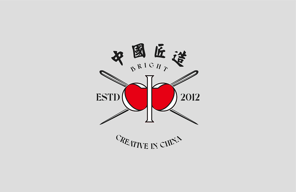 在该图标的设计上我以英文「CREATIVE IN CHINA」,简称「CIC」为创意点,通过把「CIC」对称性表达从而形成代表一个中国:红心的「中」字,背后是一个针的插图,呈X交叉,上方为「中国匠造」的古体,下方为品牌名「BRIGHT 」,「ESTD 2012」则代表品牌创始的时间,最下面的「CREATIVE IN CHINA」跟最上方「中国匠造」呼应,整体呈一个椭圆的状态,各部份内容互不干扰,又有联系,这就是最终设计给客户的图标。