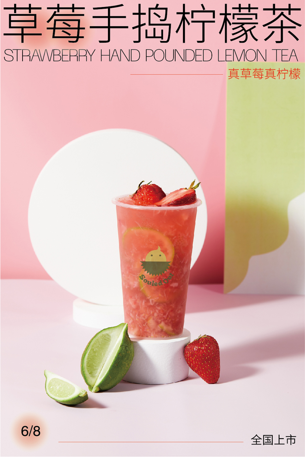 *产品海报:草莓手捣柠檬茶。