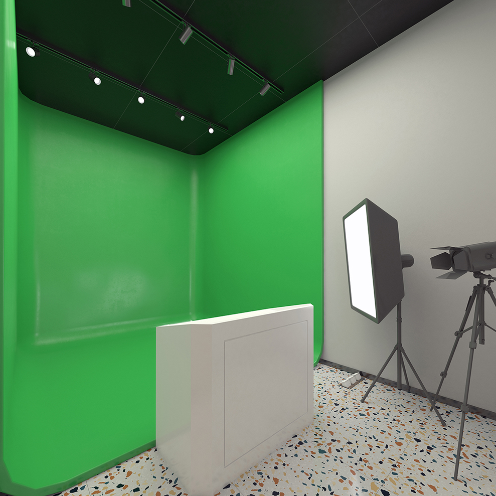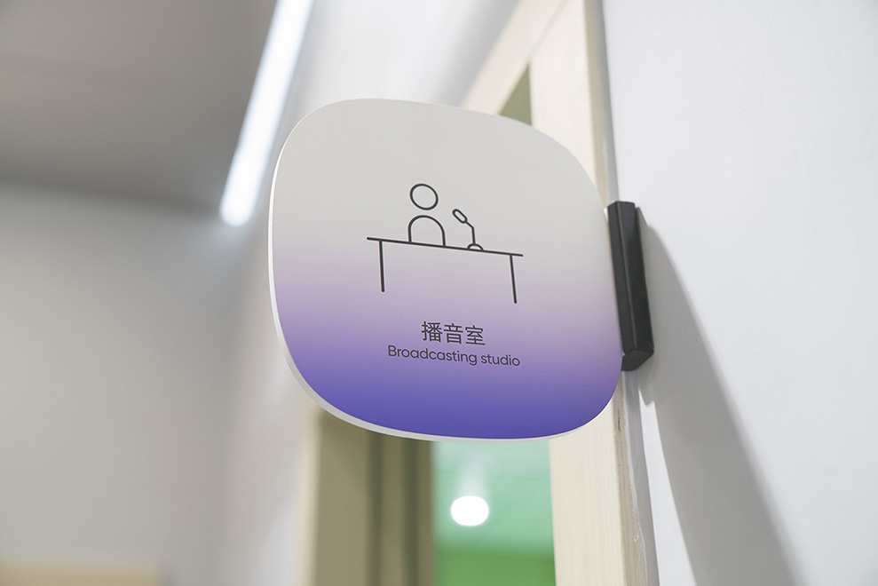 *播音室落地照片。
